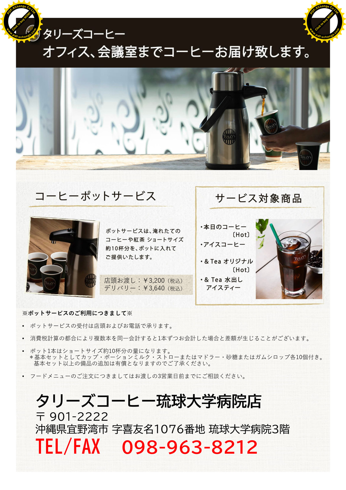 ≪タリーズ≫会議室までコーヒーお届けいたします!ポットサービスのお知らせ☆